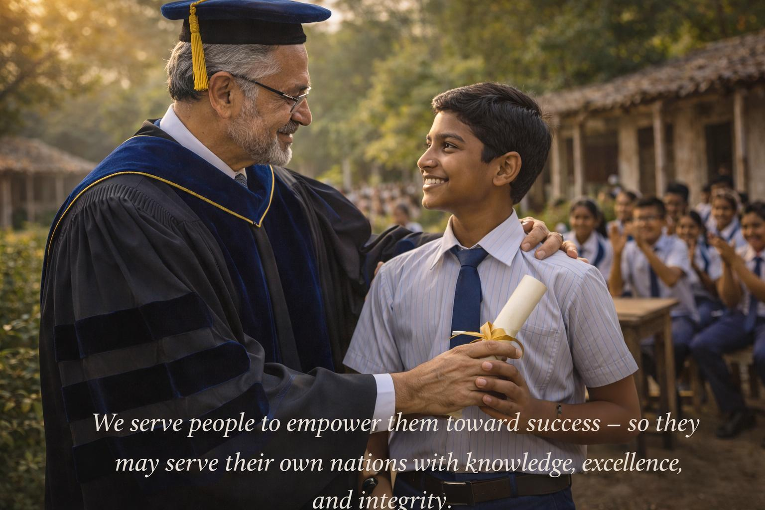 We serve people to empower them toward success — so they may serve their own nations with knowledge, excellence, and integrity.